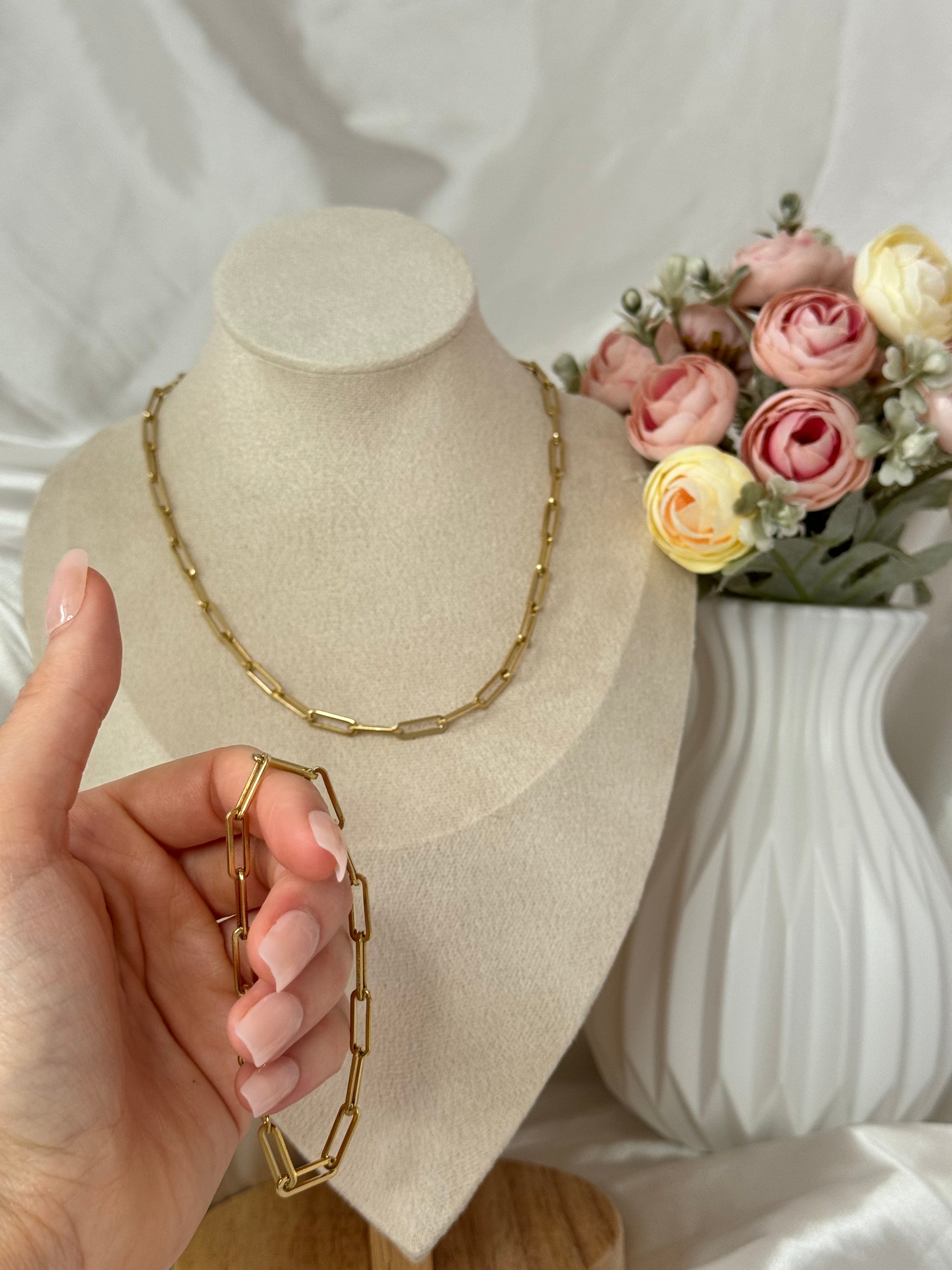 Explorez l'ensemble de chaîne Lara. Cette collection magnifique s'associe harmonieusement avec toutes les tenues, ajoutant une touche d'élégance à votre style. La chaîne généreuse offre une dimension unique, conférant un charme distinct et affirmant un style inimitable.